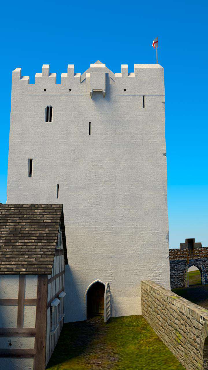 Other buildings such as a smithy, carpentry, store-rooms, stables, sheds, etc., would undoubtedly have existed inside the bawn-area courtyard and/or outside of it, although no traces of them have yet been found. None is shown in the reconstruction here. The yard therefore looks much less cluttered and busy than it would normally have been.